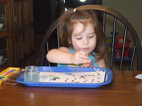 Ryleigh peeling the stickers off (a great fine motor activity)