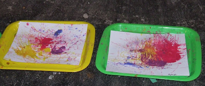 One of the books we read this week was Care Bears The Great Big Pumpkin... they dressed up for Halloween... very cute...Our project this week was Marble Painting... pretty much the only tie in between the book and project... pumpkins are round...as are the marbles... also.. the carebears are very colorful...like the paint.. too much of a stretch? :-)